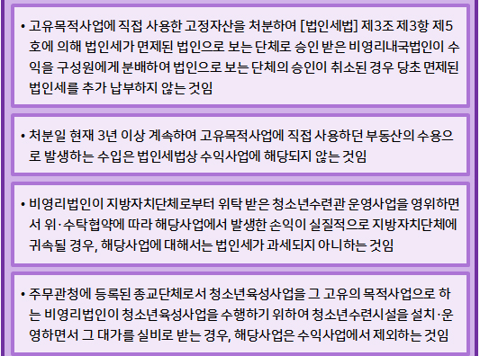 열린행정실 관리자 신재욱입니다. 오늘은 비영리법인과 공기업의 영리사업에 대해 정리해 보고자 합니다. 때때로 어떤 사람들은 비영리 법인이 영리를 위해 사업을 해서는 안 된다고 생각합니다. 첫째, 소득사업은 법인세를 납부하는 소득사업과 법인세를 내지 않는 소득사업으로 구분할 수 있다. 법인세 수익사업은 ①제조업, 건설업, 도소매업, 소비재수리업, 부동산·임대업, 사업용역업 등 수익을 창출하는 “한국표준산업분류”에 따른 각 사업 ② 이자소득 ③ 배당소득 ④ 주식/신주인수권 또는 출자지분 양도소득 ⑤ 고정자산의 처분 및 양도소득. 또한, 법인세 과세대상이 아닌 영리사업은 ① 축산 외 농업(관련 용역업 포함), 조경식재 및 관리용역업 ② 연구개발업(연구개발용역 제공, 계약서 교환 등) ③ 유아교육법 초·중등교육법 및 고등교육법에 따른 소정의 유치원, 학교, “자유경제에서의 외국교육기관의 설립·운영에 관한 특별법” 지역 및 제주 국제자유도시’ 외국교육기관(법령 등은 제외하고, 잉여금을 해외 주요 학교에 송금하거나 실제 송금할 수 있는 경우는 제외) 및 「평생교육법」에 따른 원격대학형 평생교육시설 ④ 「사회복지사업」에 따른 사회복지사업 ⑤ 국민건강보험법 「산업재해보상보험법」에 따른 의료보험업 및 「산업재해보상보험법」에 따른 산업재해보상보험업 “국민건강보험법” “대한적십자사 조직법” ⑦ 비영리법인(사립학교 신축·증축, 시설증설, 그 밖에 교육환경 개선을 위하여 설립된 법인)은 외국인사업자로 분류할 수 있습니다. 학교 시설을 제공하는 학교. 1. 비영리법인의 영리사업 비영리법인도 그 목적을 달성하기 위하여 필요한 범위에서 영리사업을 할 수 있다. 회사의 정관에서 정한 목적을 말합니다. 따라서 민법상 설립된 법인은 비영리법인으로서 영리를 목적으로 영업을 하는 경우에는 설립허가가 취소됩니다. 다만, 비영리법인이 비영리사업목적을 달성하기 위하여 필요한 범위 내에서 영리사업을 영위하고 그 사업의 성질에 위배되지 아니하는 경우에는 회사의 목적에서 벗어난 것으로 볼 수 없습니다. 예를 들어 암 예방을 목적으로 하는 기업이 학술대회 개최와 동시에 참가비를 징수하거나 관련 서적을 판매할 수 있다고 볼 수 있다. 공익법인의 영리사업 공익법인은 비영리법인보다 더 엄격한 규제를 받습니다. 즉, 공익법인이 공직법 제4조제3호에 따른 영리사업을 하고자 하는 경우에는 사업별로 주무관청의 승인을 받아야 합니다. 따라서 공익법인은 경영관리 면허를 신청합니다. 이 때 다음의 서류를 작성하여 주무관청에 제출하여 승인을 받아야 합니다. 또한 공익법인이 승인을 받은 영리기업을 변경하고자 하는 경우 전항에 따라 주관기관의 승인을 받아야 한다. • 영리사업승인신청서 • 사업계획서 • 추정손익계산서 및 별첨명세서 • 사업을 영위할 예정인 임원 명단 • 행정기관의 허가가 필요한 사업의 경우 사업승인을 받았음을 증명하는 서류