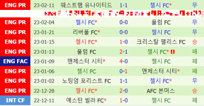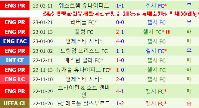 첼시 최근 10경기