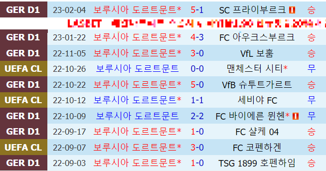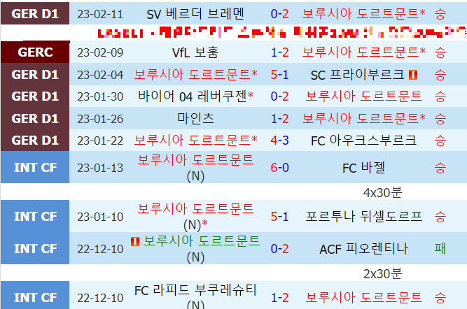 도르트문트 최근 10경기