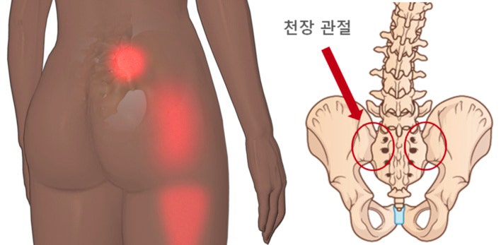 천장관절 증후군은 천장관절이 뻣뻣해져서 생기는데 천장관절이 뻣뻣해지면 관절면에 있는 연골이 더 섬유화되어 근육조직에 착상하게 되고 결국 천장관절은 시멘트로 두들겨 맞은 것과 같다. 시멘트. 굳어지면 관절 기능 장애가 발생하여 주변 근육의 지속적인 수축을 일으켜 통증을 유발합니다.
