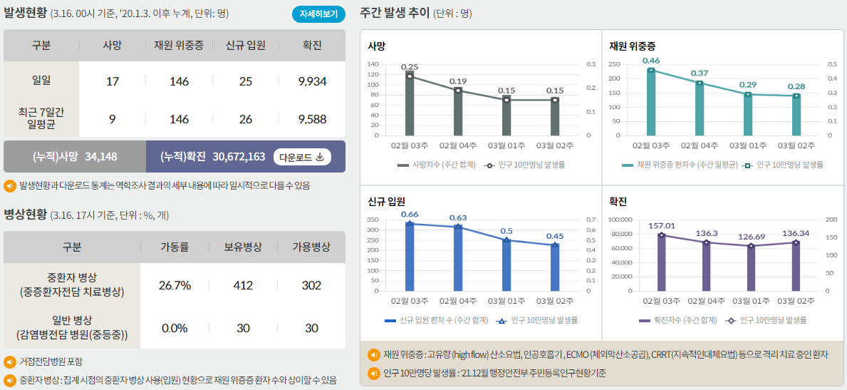 출처: Worldometer worldometers.info, 질병관리본부 cdc.go.kr