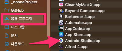 - ~/라이브러리/환경설정/안드로이드 스튜디오